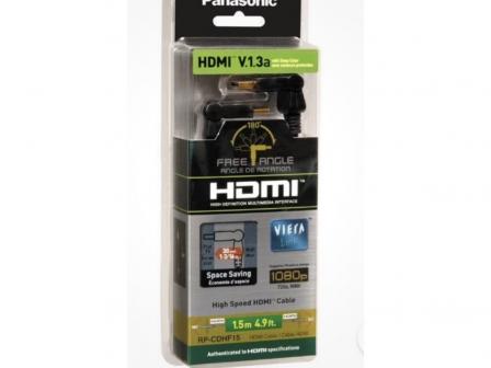 The Panasonic RP-CDHF15 is a 1.5-metre High-Speed HDMI cable designed with a 180° Free Angle (rotating) connector that makes connecting HDMI devices easier when space behind a screen is limited — especially useful for wall-mounted TVs or shallow entertainment units