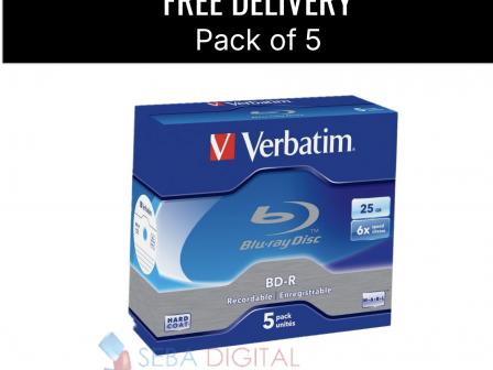 Verbatim BD-R Single Layer Blu-ray discs provide reliable, high-capacity storage for high-definition video, large data files, and backups. Each disc offers 25GB of storage and supports recording speeds of up to 6x for fast and efficient data writing. Supplied in a protective jewel case pack, these discs help keep your media safe from dust and damage.